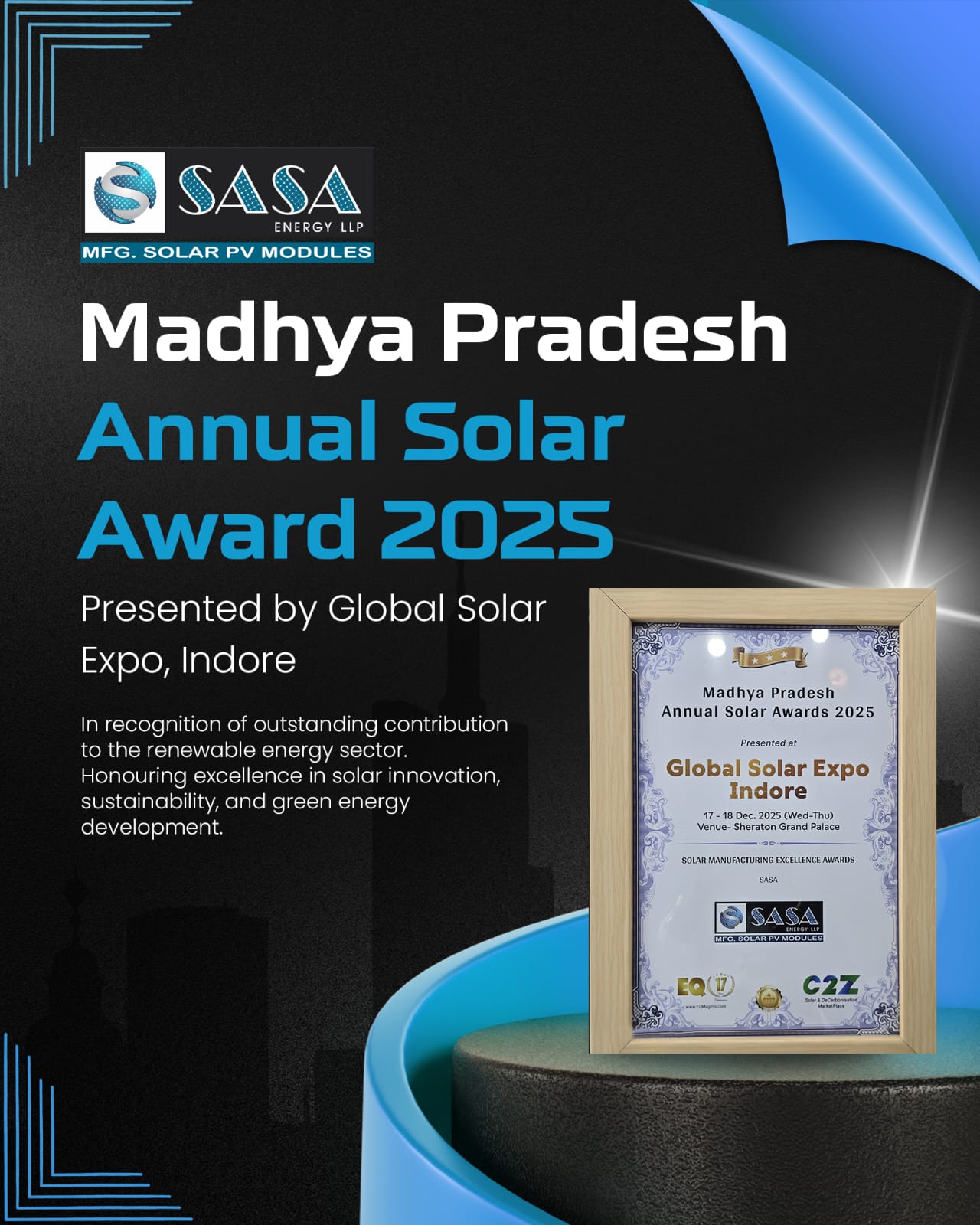 AwardsAllSustainability Leadership AwardsMSME AwardEQ TN Award 2025Solar Quarter Contractor Meet-2025 SuratRE Connect Summit-2025 PuneSuryacon-2025 AhmedabadGLOBAL SOLAR EXPO-INDORE-2025